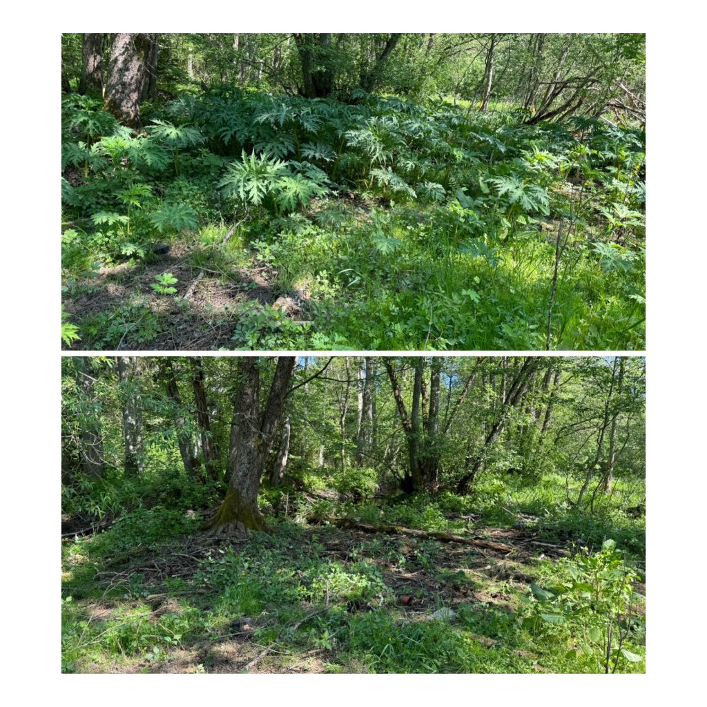 Vi utför mekanisk bekämpning av jätteloka (Heracleum mantegazzianum) i Illharjens naturreservat på uppdrag av Vetlanda kommun. Området har begränsad tillgänglighet och en känslig naturmiljö, vilket gör att fordon inte kan användas vid arbetet.